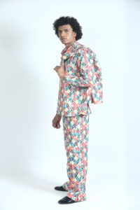 Step into bold, contemporary style with the Rainbow Printed Three Piece Set (Men)—a perfect blend of vibrant design and modern comfort. Featuring a striking multicolor geometric print, this set is designed for men who like to stand out with confidence.