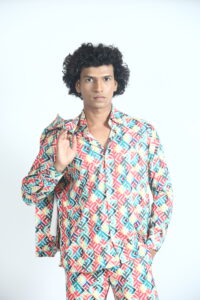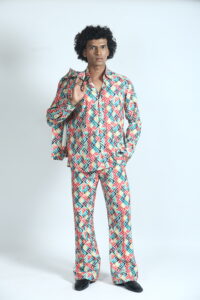Step into bold, contemporary style with the Rainbow Printed Three Piece Set (Men)—a perfect blend of vibrant design and modern comfort. Featuring a striking multicolor geometric print, this set is designed for men who like to stand out with confidence.